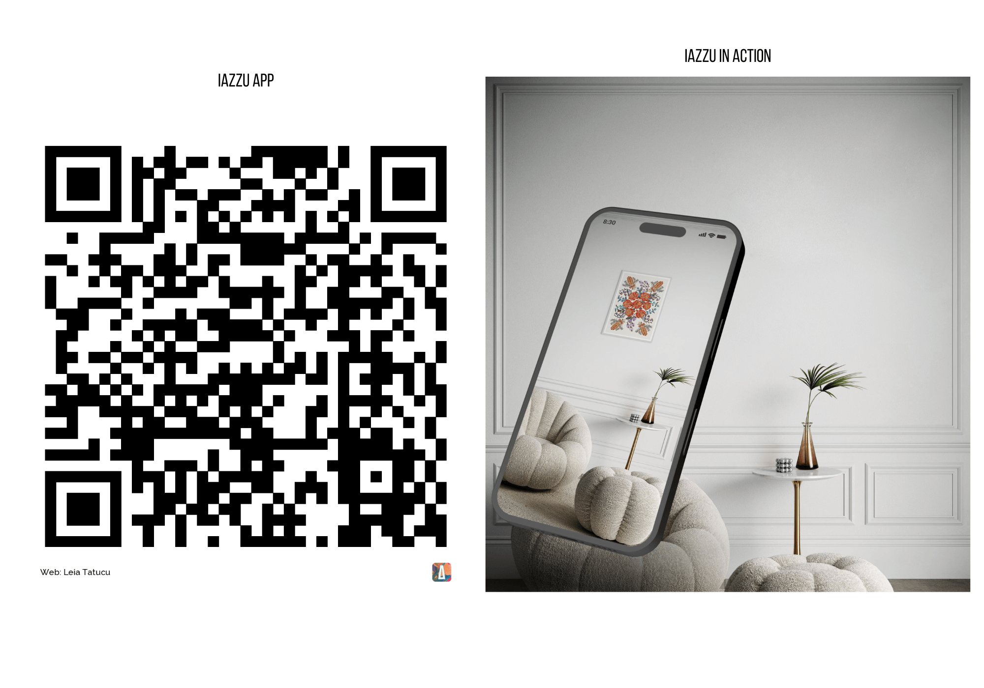 Entdecken Sie meine Kunst auf IAZZU, indem Sie den untenstehenden QR-Code scannen. Erfahren Sie, wie meine Originalwerke und Kunstdrucke Ihren Raum verwandeln und Ihr Zuhause zum Leben erwecken können.